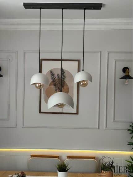 Beyaz Üçlü Yemek Masası Sarkıt Avize