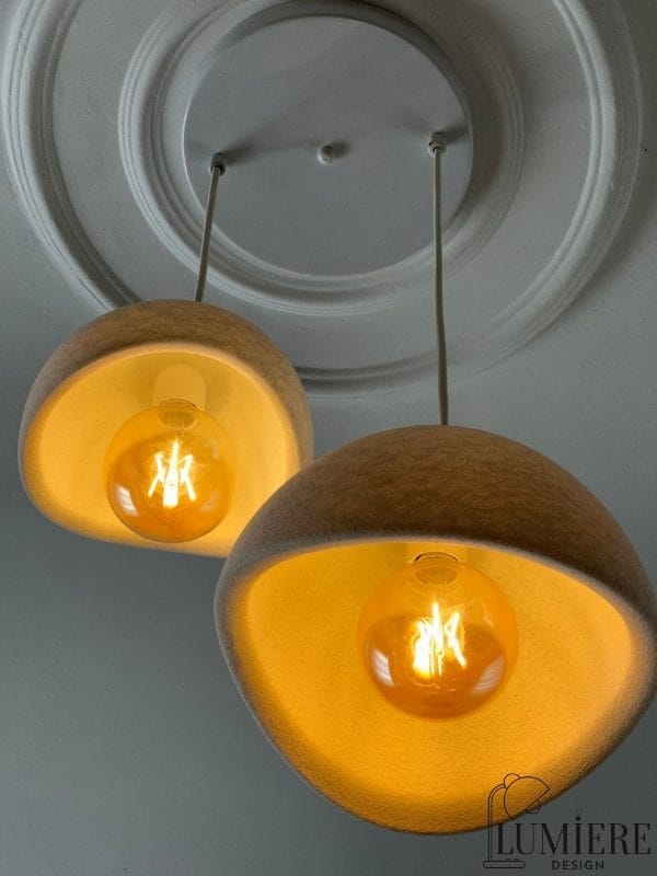 Beyaz Beton İkili Sarkıt Avize | İskandinav Bohem