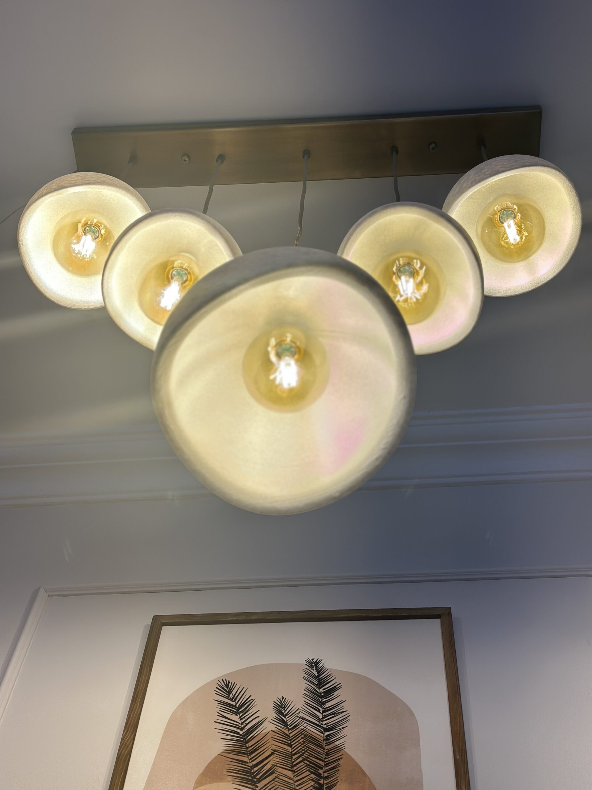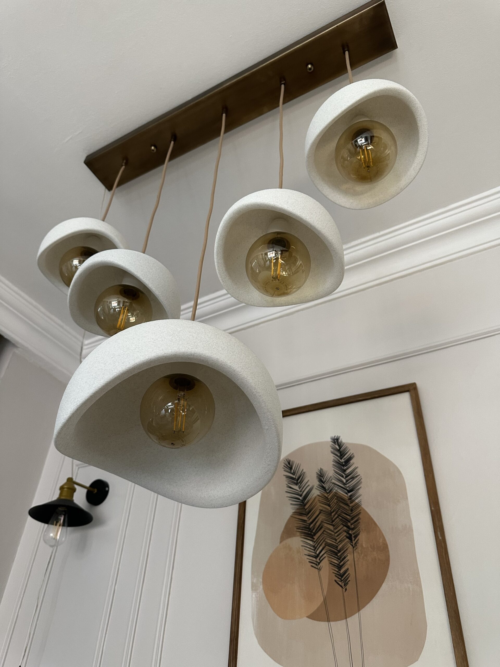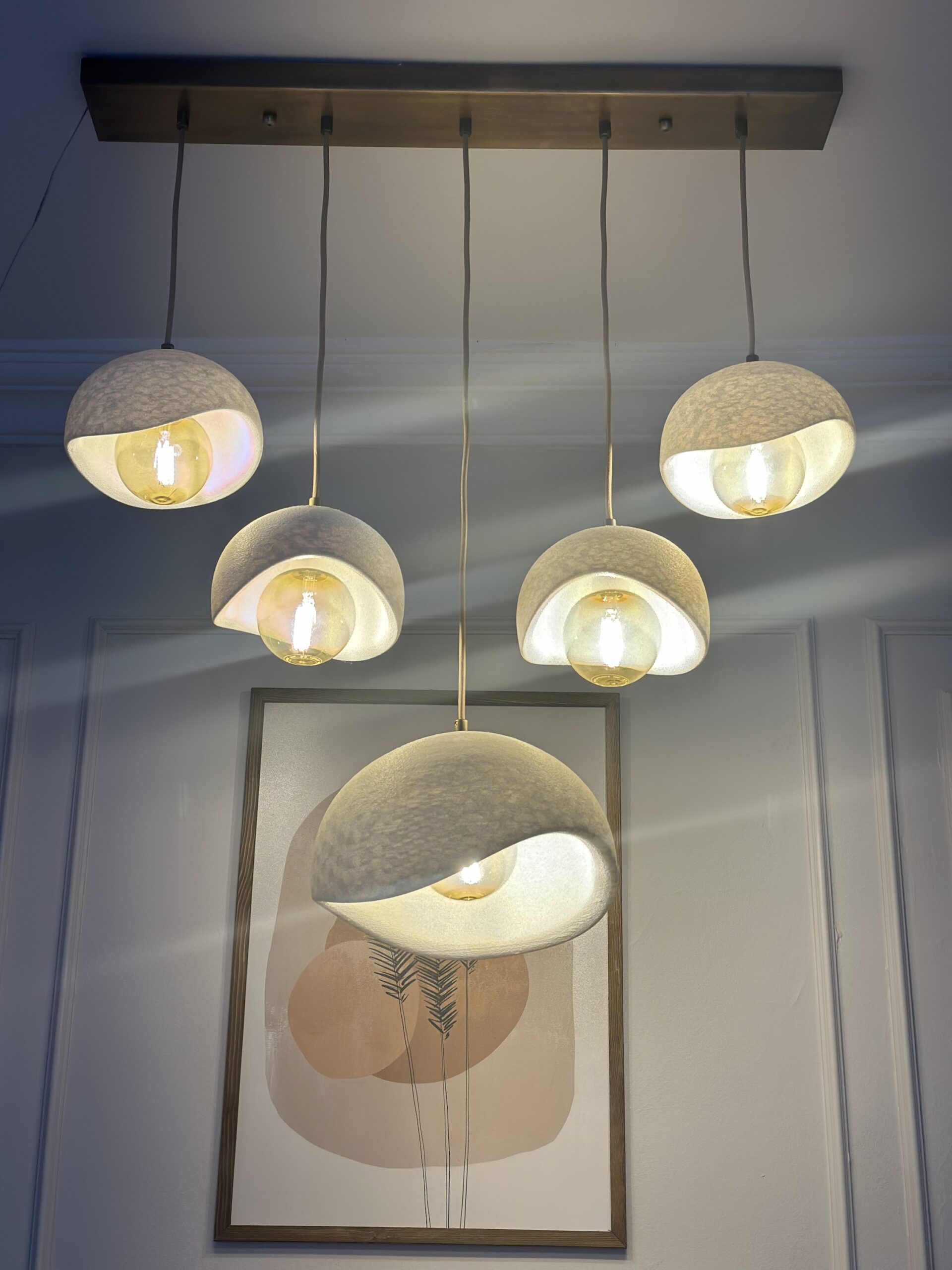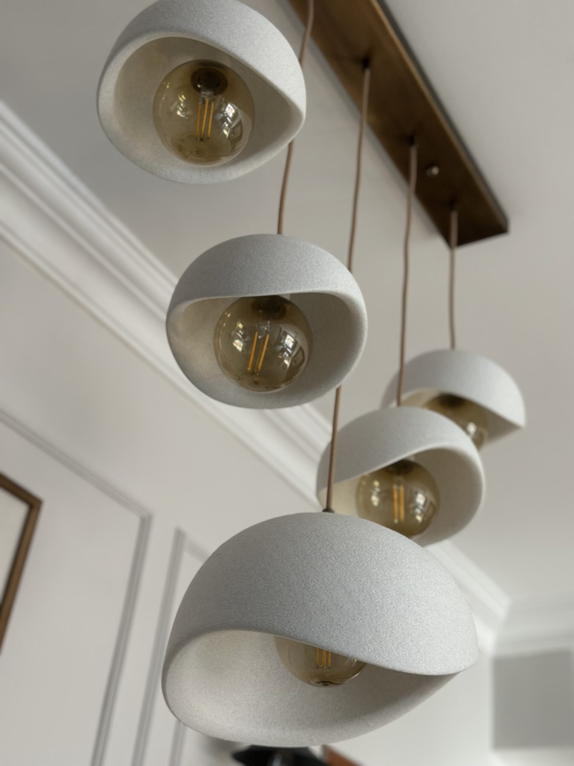 Lumiere Design’ın 5’li Kumandalı Bohem Beton Avizesi, yemek masalarına modern ve sıcak bir dokunuş katıyor.