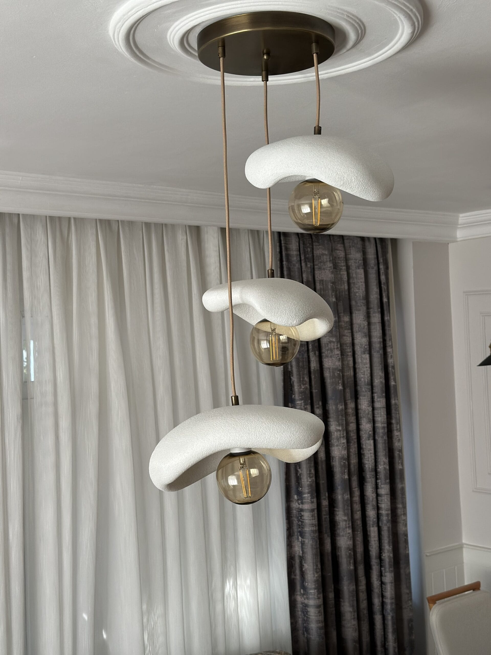 Leaf Avize, modern minimalizm ile doğal organik hatların estetik buluşması. üçlü beton görünümlü başlık tasarımıyla yaşam alanlarınıza zarif bir dokunuş katar. Üçlü sarkıt formu, hem işlevsel aydınlatma hem de dekoratif şıklık sağlar.