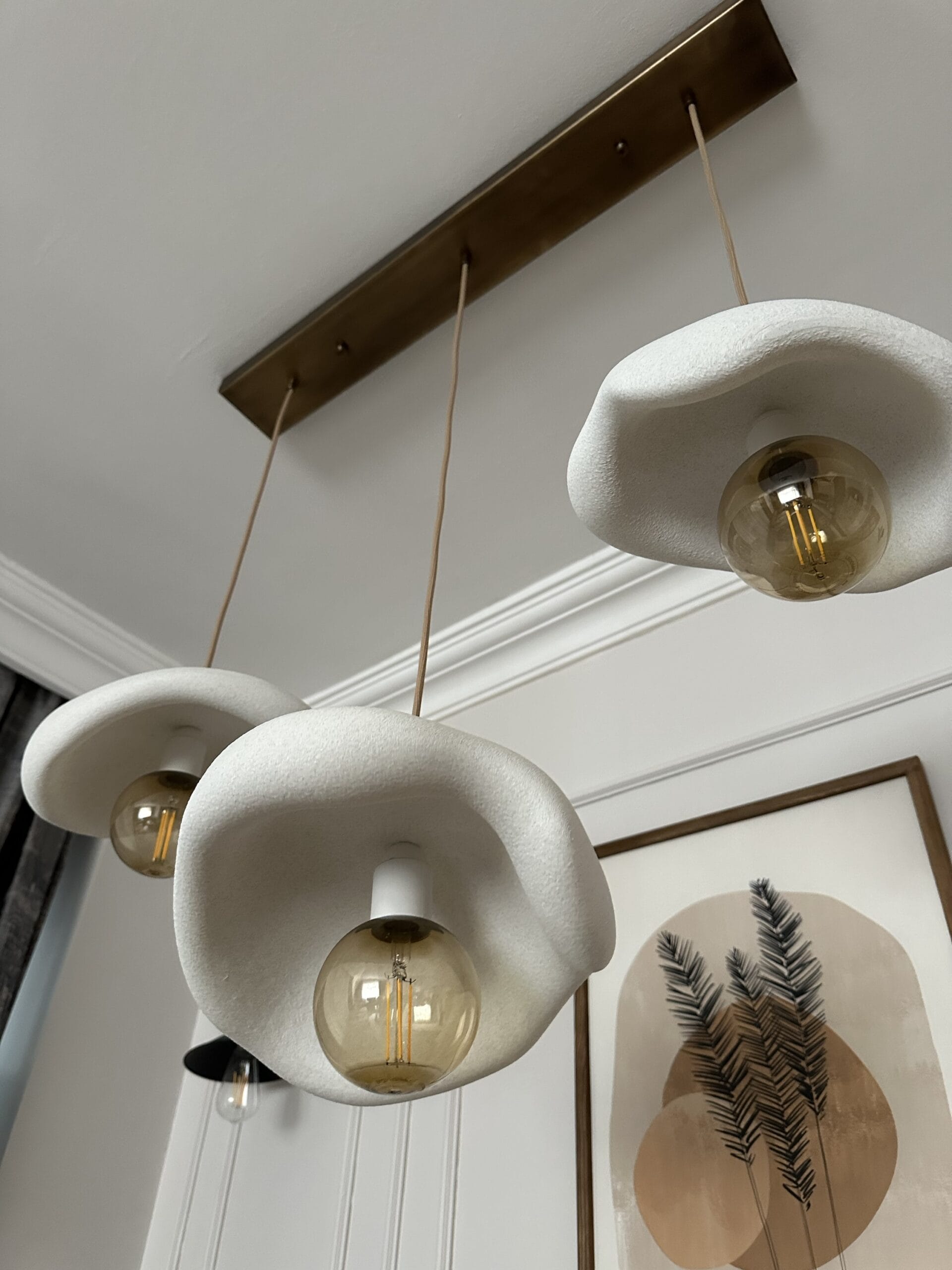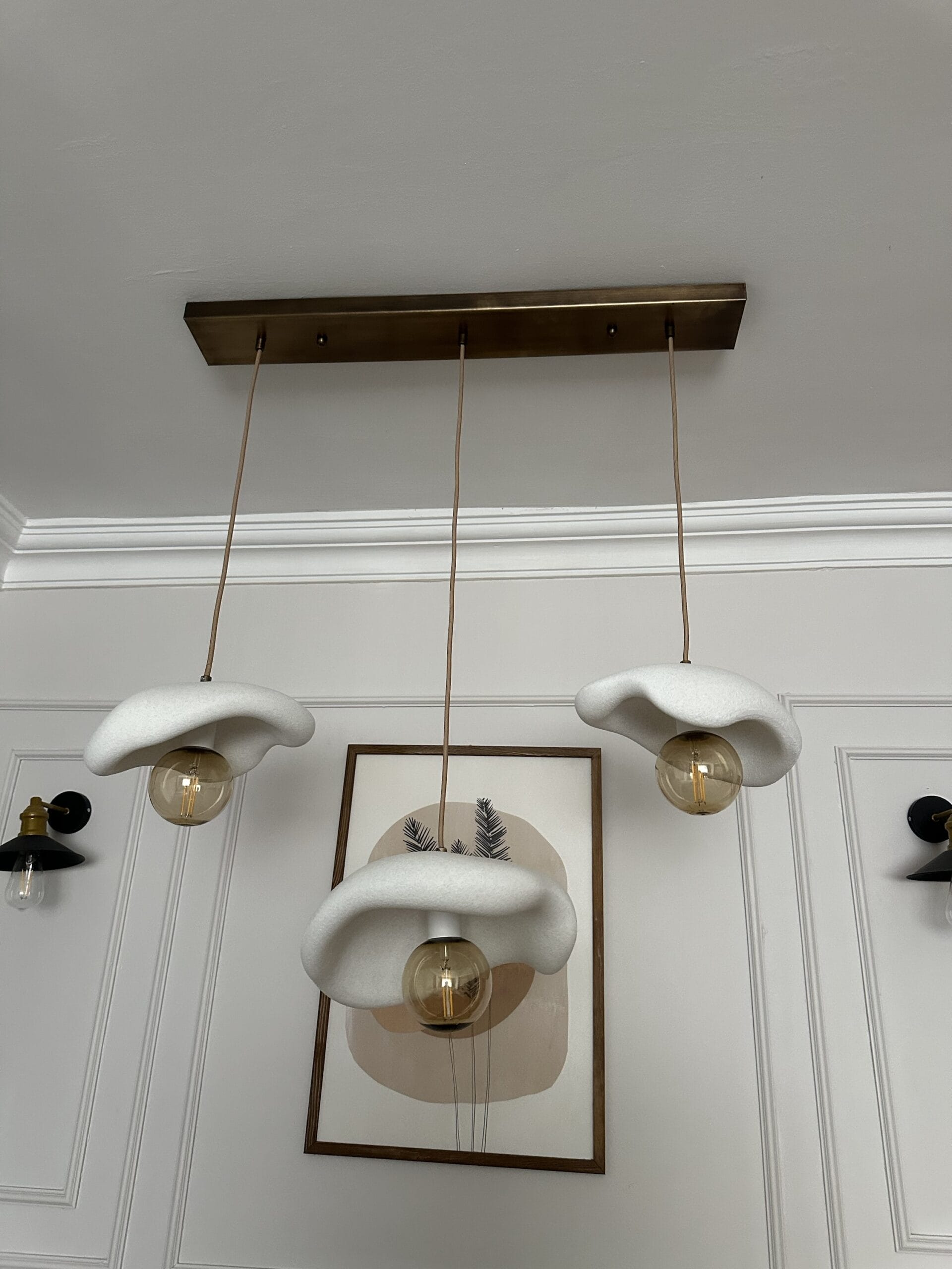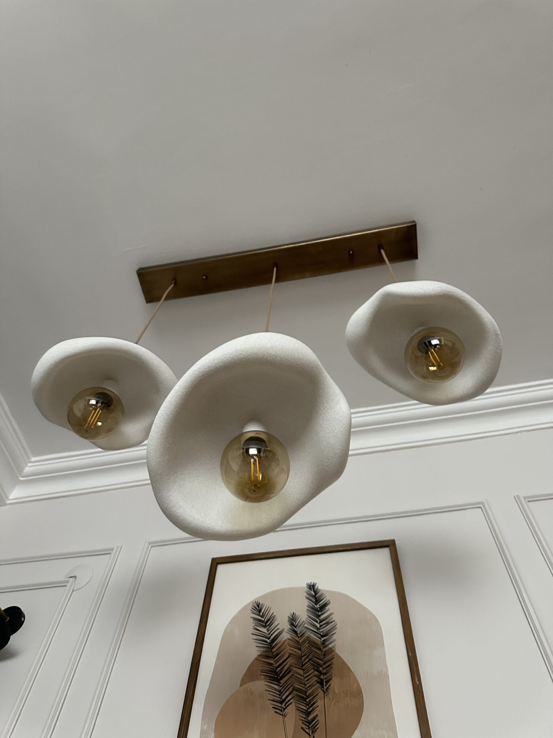 Leaf Avize, modern minimalizm ile doğal organik hatların estetik buluşması. üçlü beton görünümlü başlık tasarımıyla yaşam alanlarınıza zarif bir dokunuş katar. Üçlü sarkıt formu, hem işlevsel aydınlatma hem de dekoratif şıklık sağlar.