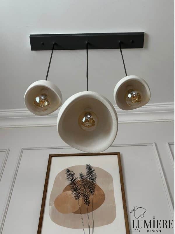 Siyah üçlü sarkıt avize, endüstriyel tasarımın en etkileyici formu. Bu 3’lü beton avize seti ile geniş alanlarda mükemmel aydınlatma ve dramatik atmosfer yaratın.